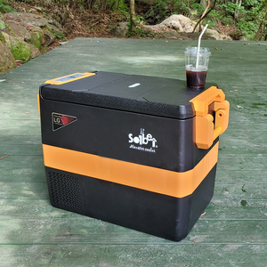 50리터 대용량으로 차량에서 음식과 음료를 냉장·냉동 보관할 수 있는 인버터 냉장고로, LG 컴프레셔를 적용해 안정적인 성능과 에너지 효율이 뛰어나며 블랙오렌지 색상으로 세련된 디자인을 갖추었다.