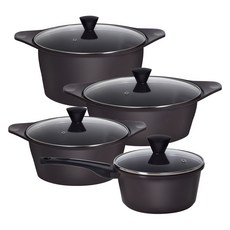 국내 생산된 주물 세라믹 냄비 4종 세트로, 편수, 양수, 전골 냄비 구성으로 다양한 요리에 활용 가능하며, 다크브라운 색상으로 고급스러운 주방 분위기를 연출할 수 있다.