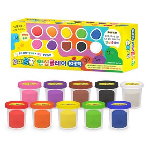다양한 색상의 클레이 10종이 포함된 세트로, 아이들이 안전하게 만지고 조형하며 창의력과 손재주를 발달시킬 수 있는 유아용 놀이 제품입니다.